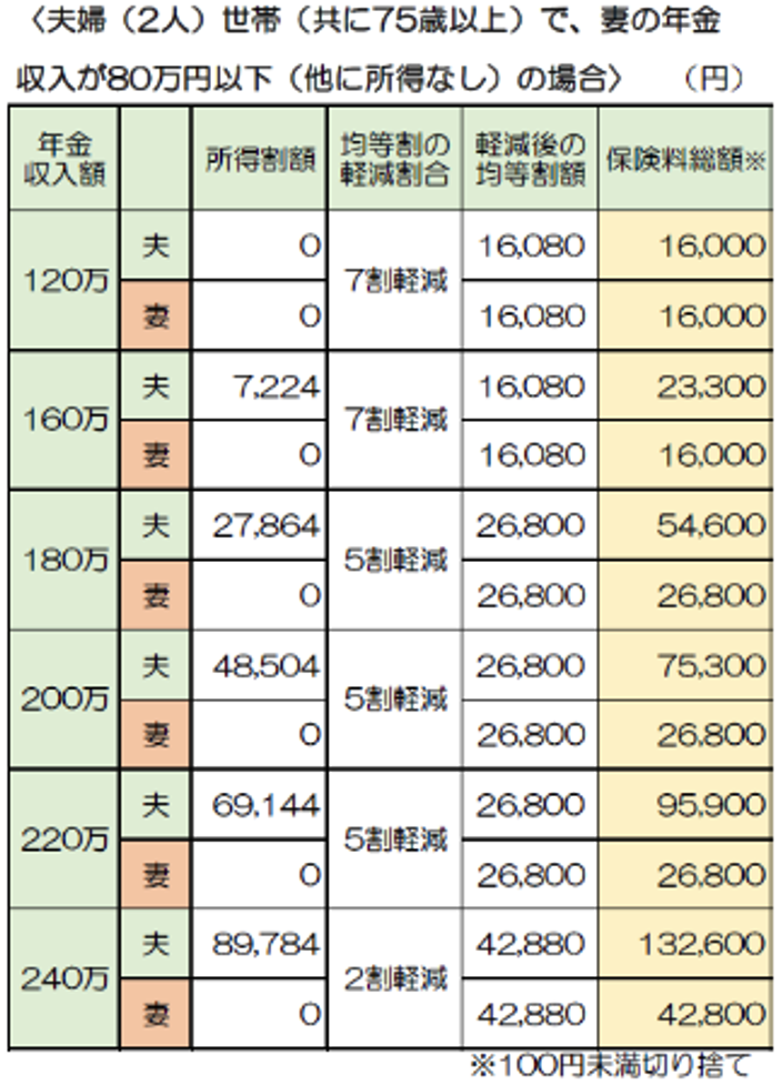 ▼例2:夫婦(2人)世帯(共に75歳以上)で、妻の年金収入が80万円以下(他に所得なし)の場合