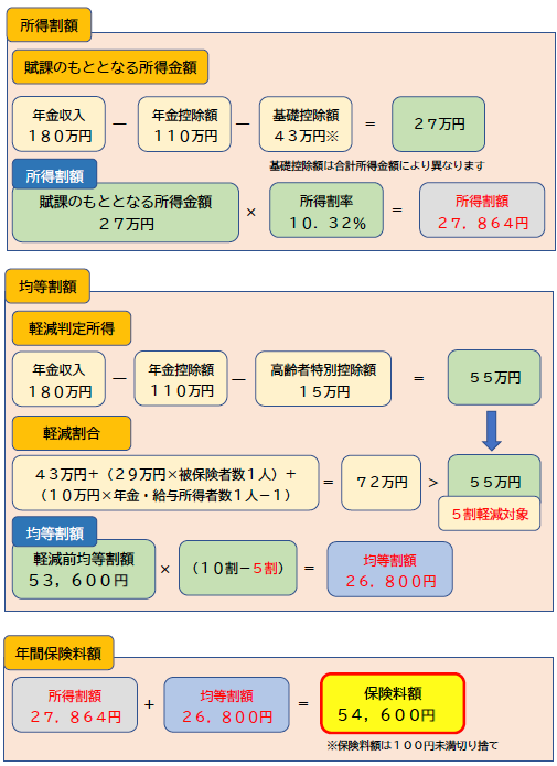 保険料の額は被保険者全員が均等に負担する「均等割額」と被保険者の所得に応じて負担する「所得割額」の合計額となります。