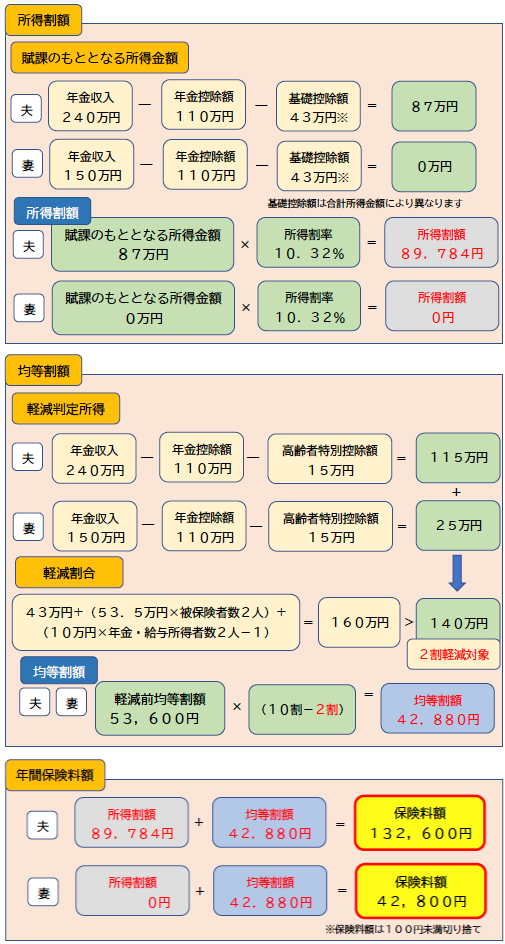 ▼例2:夫婦2人世帯で共に被保険者である場合(夫の収入が年金収入240万円、妻の収入が年金収入150万円の場合