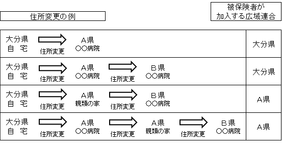 また、複数の病院等に継続して入院等をした場合、病院等以外の場所で、最後に住所を有していた住所地の広域連合の被保険者となります。
